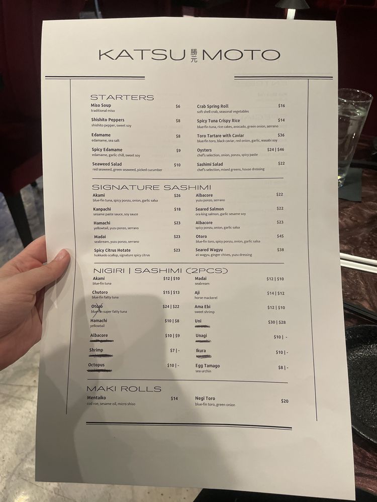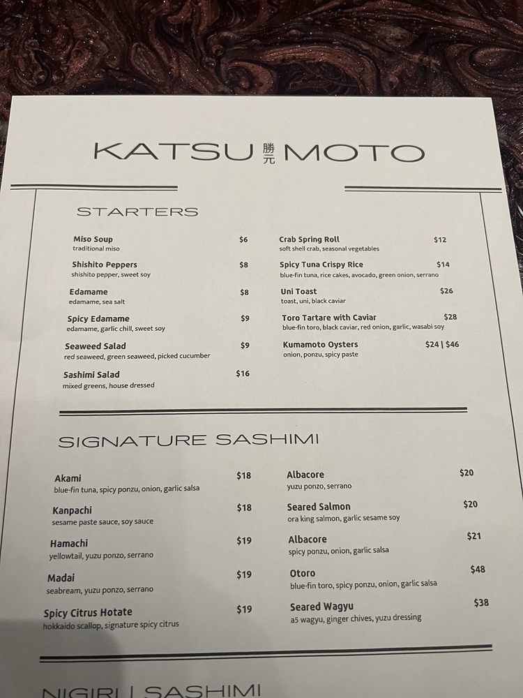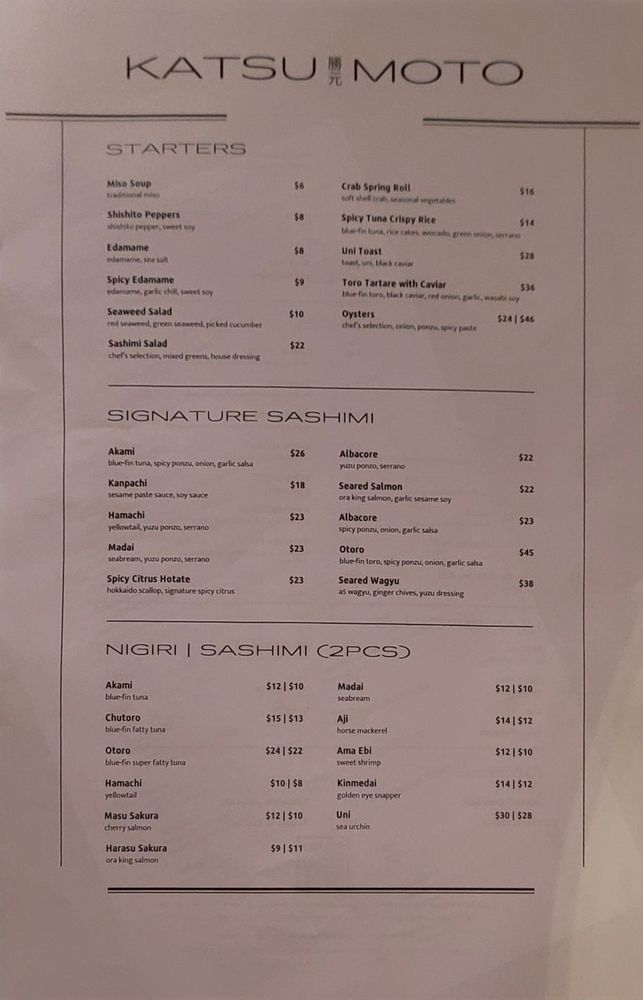 - Signature Sashimi: Indulge in the Kanpachi or treat yourself with the luxurious Otoro Onion Salsa, priced at $45.00.